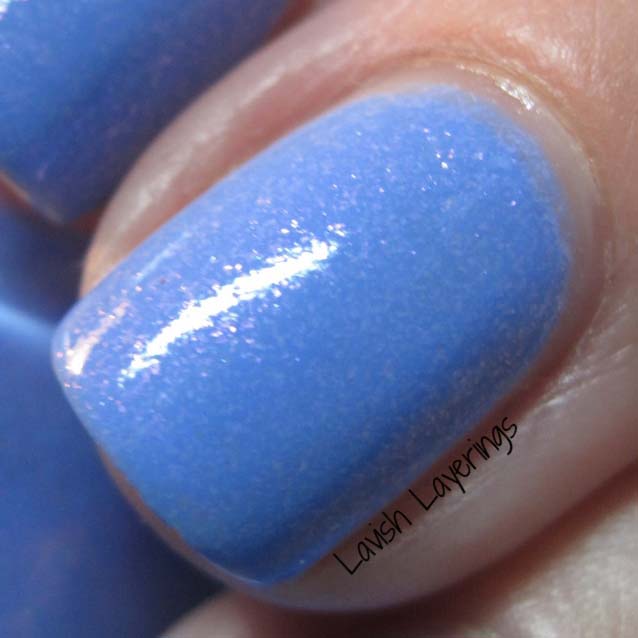 Suit the Breeze is a periwinkle blue creme with tons of pink and violet microflakes. Formula was easy to use and I got full coverage in 3 thin coats. The shimmer was so much harder to capture in this shade than the other shimmers, but it is much nicer in real life with pink flashes.
